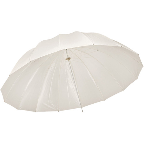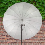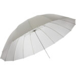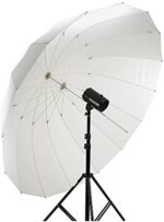 This umbrella has a unique structural design as well. Instead of bendable metal, the 16 inner ribs are made of durable fiberglass. The improved “finger-friendly” locking mechanism means you won’t pinch your fingers when you’re setting up or breaking down. The translucent white umbrella’s fabric can be used in the traditional bounce mode, or for slightly snappier contrast and a low-ceiling-friendly smaller form factor, you can turn the umbrella around, aim the convex side of it at your subject, and “shoot through” by pumping the light source through the fabric. In addition, an optional diffuser is available for this umbrella, which effectively converts it to a large softbox with just a 1/2 stop loss of output.