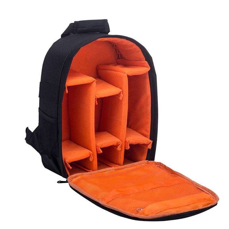 - ROOMY COMPARTMENT1-2 camera bodies and 3-4 lenses/flashes, plus 2 net pockets for IPAD and camera accessories. Outside with strap for mini tripod and pocket for water bottle. Small size sturdy outer with removable well-padded dividers,lightweight and portable, is specially designed for hiking and short strip.