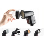 Offering a powerful 76Ws output along with a distinct design, theΒ Godox V1 FlashΒ is an advanced light source with features that clearly reflect the current state of the industry. Compatible with Canon E-TTL / E-TTL II, this flexible on-camera light is distinguished by its round head, which provides soft, smooth light with gradual fall off that augments the flattering output.